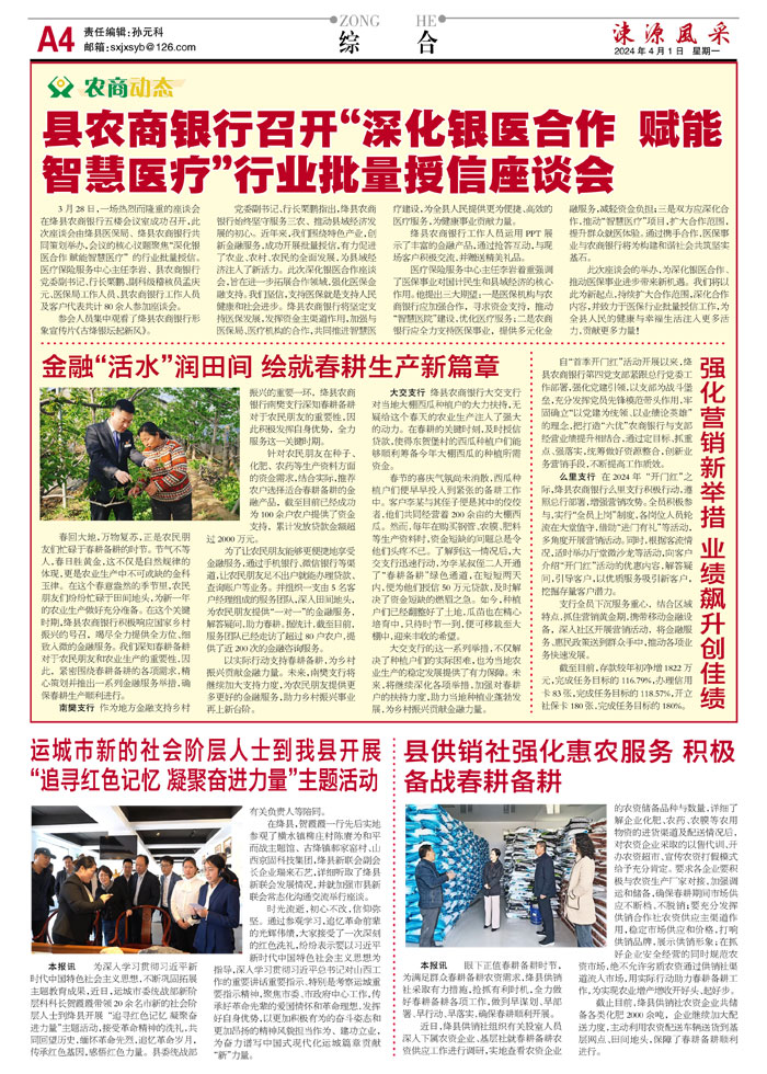 党委副书记、行长栗鹏指出,绛县农商银行始终坚守服务三农、推动县域经济发展的初心。近年来,我们围绕特色产业,创新金融服务,成功开展批量授信,有力促进了农业、农村、农民的全面发展,为县域经济注入了新活力。此次深化银医合作座谈会,旨在进一步拓展合作领域,强化医保金融支持。我们坚信,支持医保就是支持人民健康和社会进步。绛县农商银行将坚定支持医保发展,发挥资金主渠道作用,加强与医保局、医疗机构的合作,共同推进智慧医疗建设,为全县人民提供更为便捷、高效的医疗服务,为健康事业贡献力量。