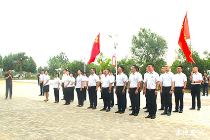 “我志愿加入中国共产党,拥护党的纲领,遵守党的章程……”在陈赓为和平而战纪念馆,纪委书记、监事长张芬艳带领全体党员在鲜红的党旗下,高举右手,庄严宣誓,重温入党誓词。