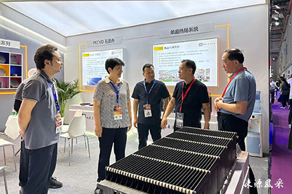 在会展中心,解芳一行先后走进材料馆、装备馆等展馆,详细了解光伏、储能以及相关产业技术创新、产品研发等情况,并与参会客商深入交流、精准招商,吸引产业链上下游企业落户绛县。