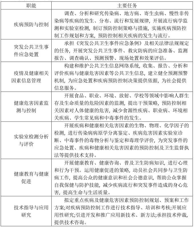 以上相信大家对疾病预防控制中心的职能都有所了解啦,如果想知道各个职能的主要任务,可以看看下附的表格: