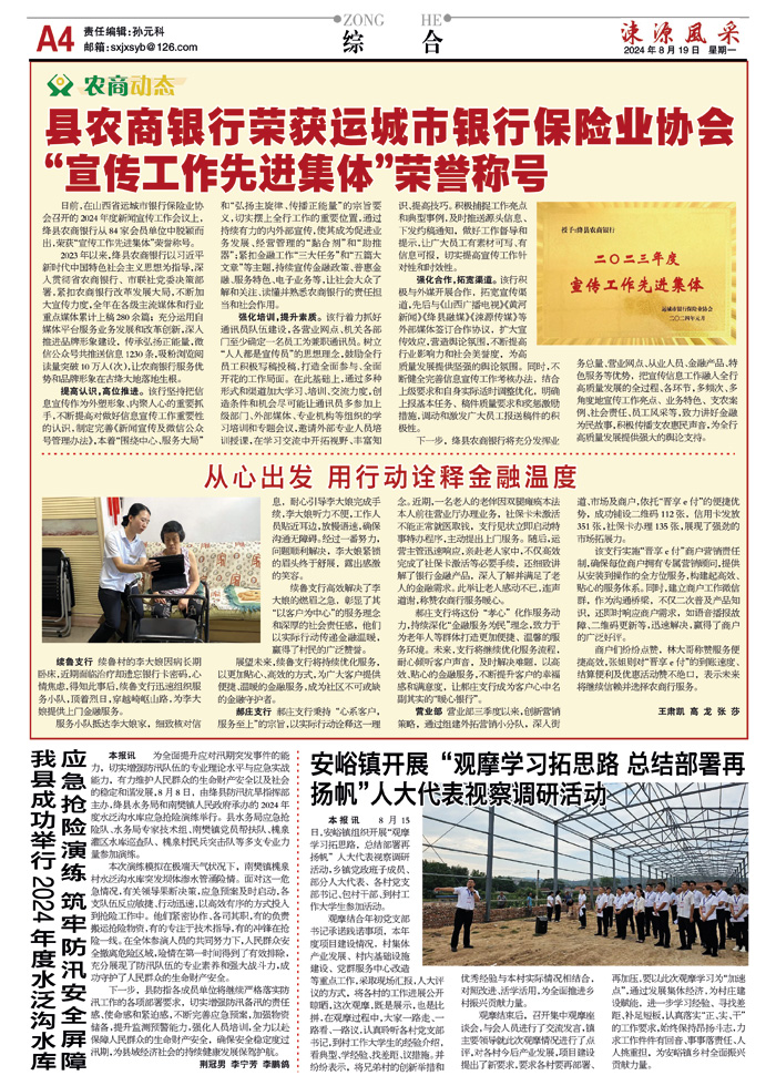 县农商银行荣获运城市银行保险业协会“宣传工作先进集体”荣誉称号