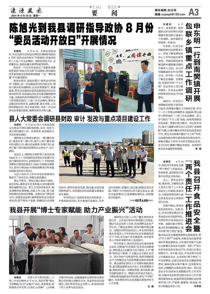 陈旭光到我县调研指导政协8月份“委员活动开放日”开展情况