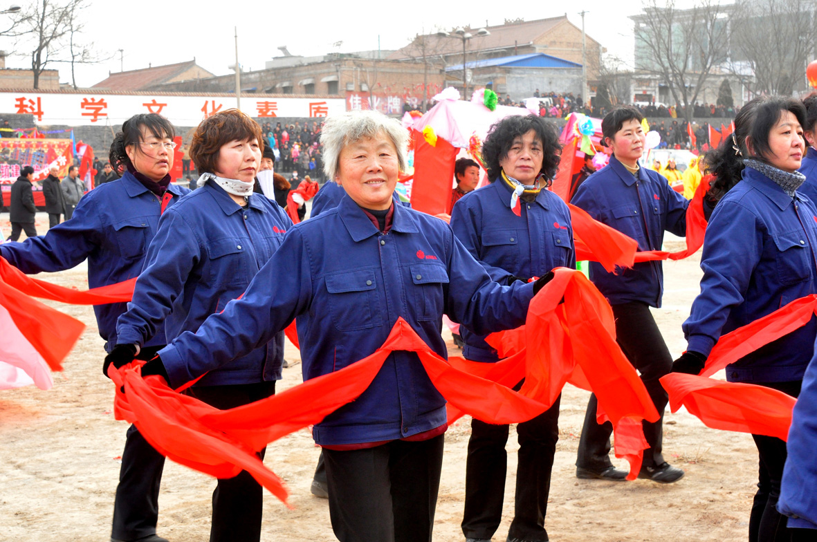 秧歌是随着中国人民解放军进驻传入县境的。因它简单易跳,服装没有严格要求,可随便扮演各色人物,很快为广大群众所接受。元宵节期间,各村都有自己的秧歌队,他们身着五颜六色服装,走上街头,随着锣鼓节奏载歌载舞,彩绸飘飘,非常热闹。