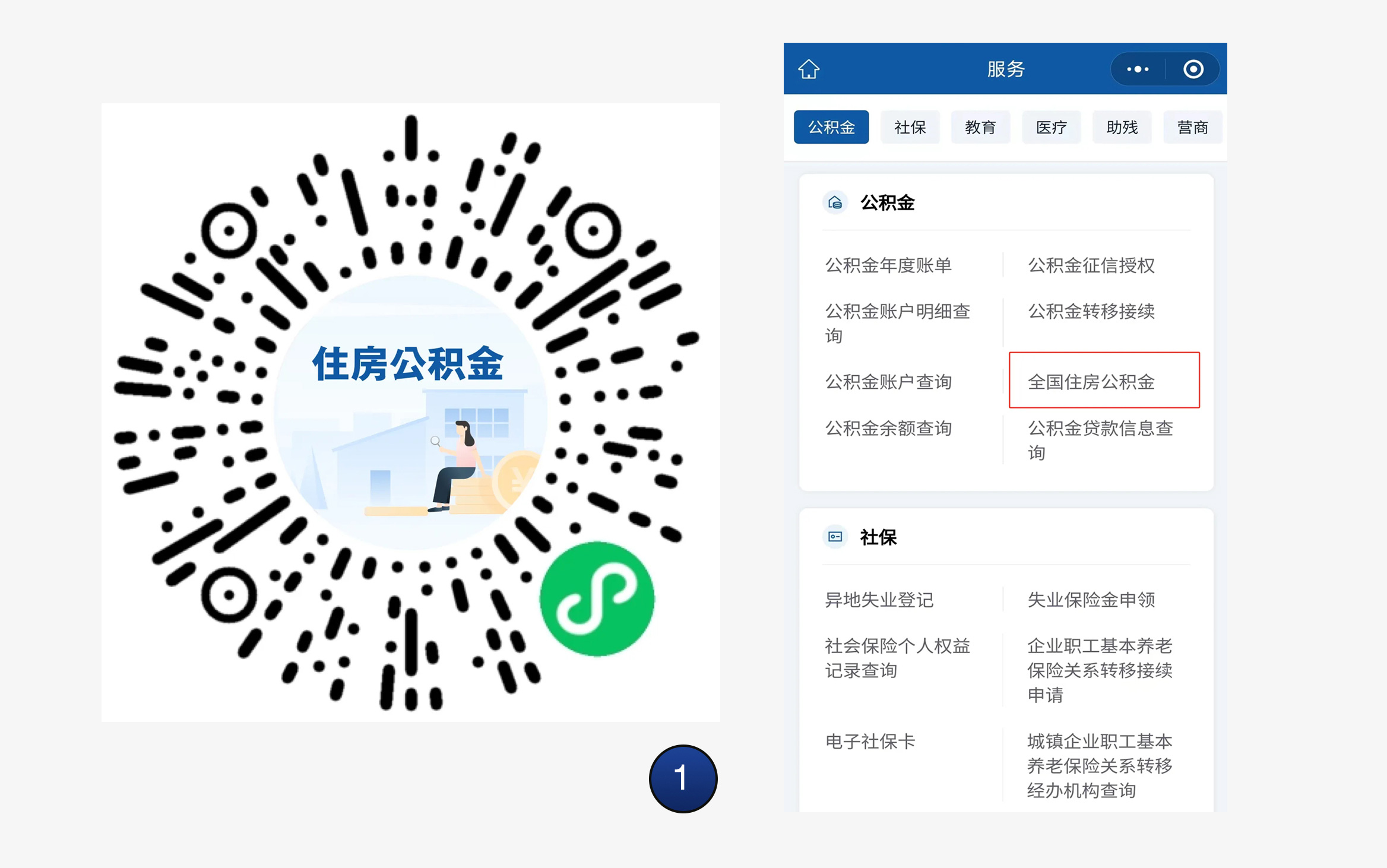 1、扫码进入国务院客户端小程序,【全国住房公积金服务】