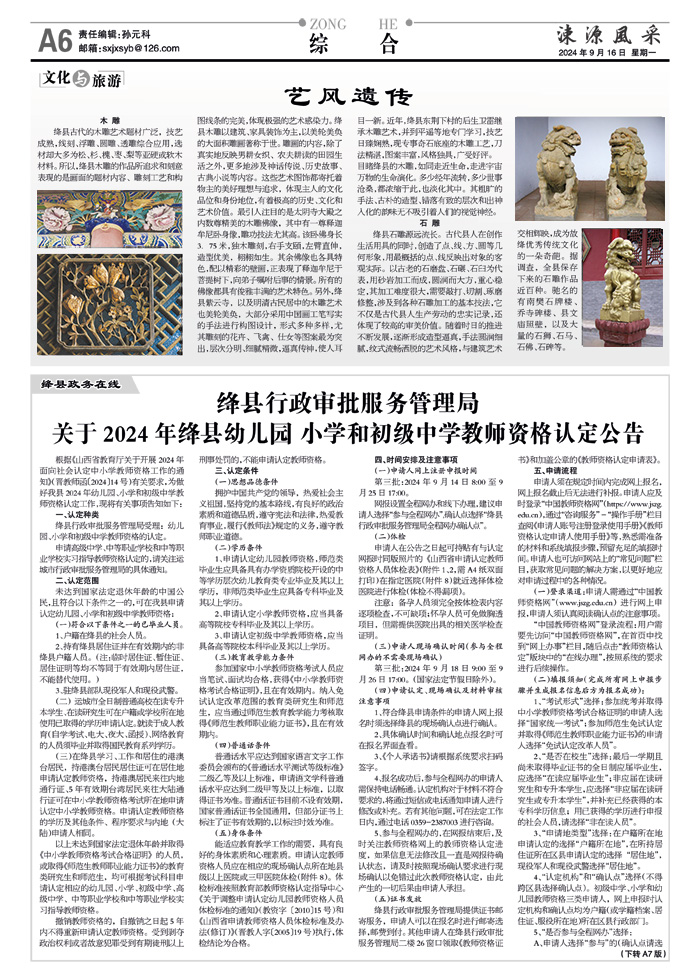绛县行政审批服务管理局关于2024年绛县幼儿园 小学和初级中学教师资格认定公告