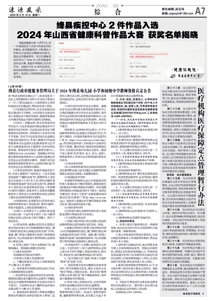 绛县疾控中心2件作品入选2024年山西省健康科普作品大赛 获奖名单揭晓