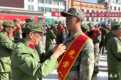 仪式上,全体人员奏唱了《中华人民共和国国歌》;“参试”老前辈代表进行了致辞并为新兵披绶带、戴红花、整理着装,新兵家长代表、新兵代表分别作了发言,入伍新兵进行了庄严宣誓。