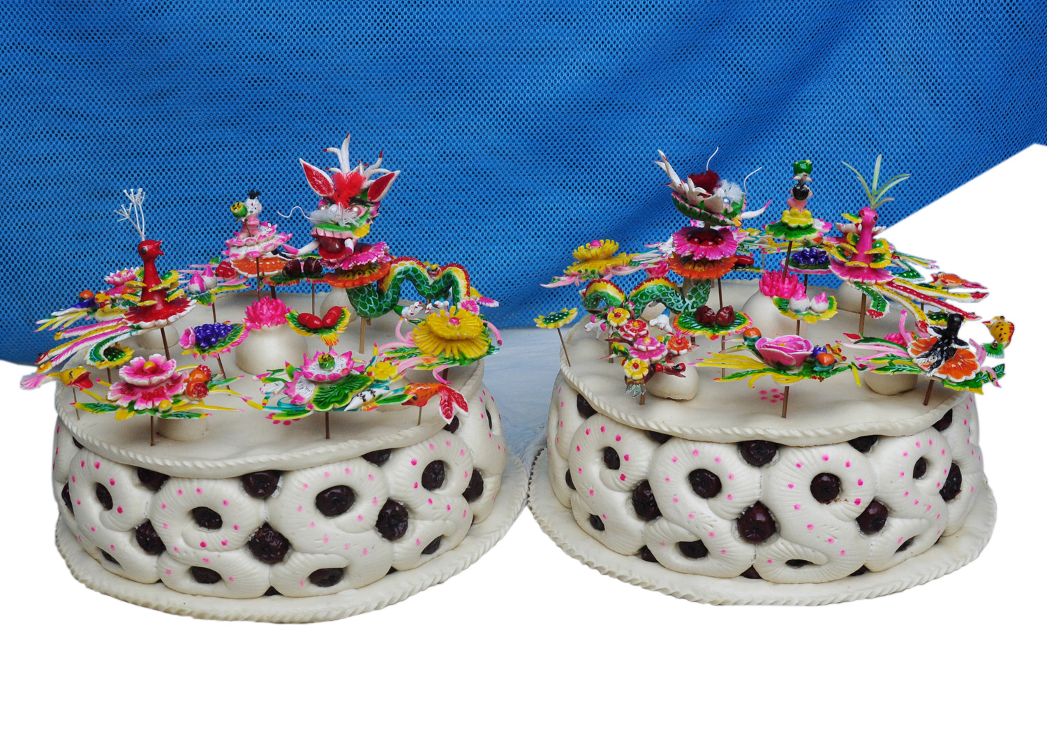 面塑,俗称面花、礼馍、花糕、捏面人,在绛县流传甚广。它以上好的白面发酵配碱后反复揉搓,手工做成小巧玲珑、形态各异的飞禽走兽或人物,上笼蒸熟后,再涂以不同色彩。绛县面塑造型简洁浑厚,形象生动自然,于简约中见泼辣,于饱满中见夸张,地方特色鲜明,极富生活情趣,为绛县大地带来几多亮丽景致。绛县面塑巧手有东吴璧村的柴玉环、东关村的李如意、东吴村的高玉莲等。附近家户红白喜事中的礼馍、花糕等,都有她们定做。由她们所做的人物群塑、动物群塑、花卉群塑,成了欣赏者的抢手货。其中,柴玉环所作的“福娃祝寿”、“狮威胜虎”、“龙凤全祥”、“九龙戏珠”、“杨门女将”、“十二生肖”等面塑作品还于2012年在三区市(即临汾市、运城市、晋城市)数十县(即襄汾、曲跃、翼城、新绛、闻喜、高平、阳城、绛县、垣曲、侯马、万荣、河津、稷山)云丘山旅游区开业庆典工艺作品展览中被评为一等奖,反响很大。
