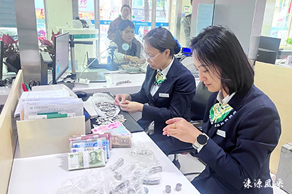 山底支行 张大爷经营着一家蔬果超市,常常因收到残零钱而感到困扰,山底支行成为了她的贴心帮手。