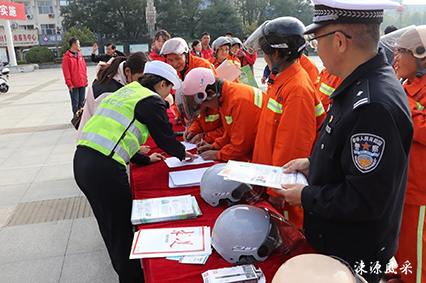 活动现场,宣传民警播放环卫工人交通事故警示教育片、宣讲不戴头盔危害、详细讲解、示范如何正确佩戴头盔,还通过向环卫工人发放道路交通安全宣传资料、关注绛县交警微信公众号、签安全文明出行承诺书等方式,提醒广大环卫工人佩戴头盔就是佩戴“安全”,骑乘电动车、摩托车要严格遵守交通安全法律法规,戴好头盔,杜绝逆行、不按规定车道行驶、闯红灯等交通违法行为,安全文明出行,严防交通事故发生。