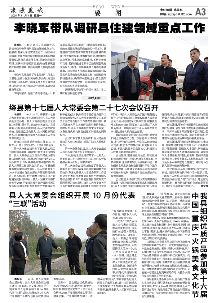本报讯 10月28日,绛县第十七届人大常委会第二十七次会议召开。县人大常委会主任孙晓,县人大常委会副主任王述江、李彩霞、周永平、卫文静出席会议。县委常委、政府副县长申东明,县人民法院院长冯波,县纪委监委负责人、县人民检察院负责人、县直相关单位负责人和部分县人大代表等列席会议。