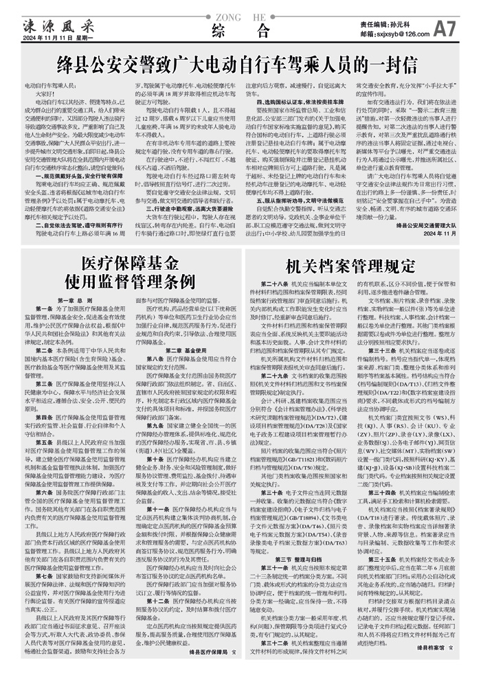 绛县公安交警致广大电动自行车驾乘人员的一封信