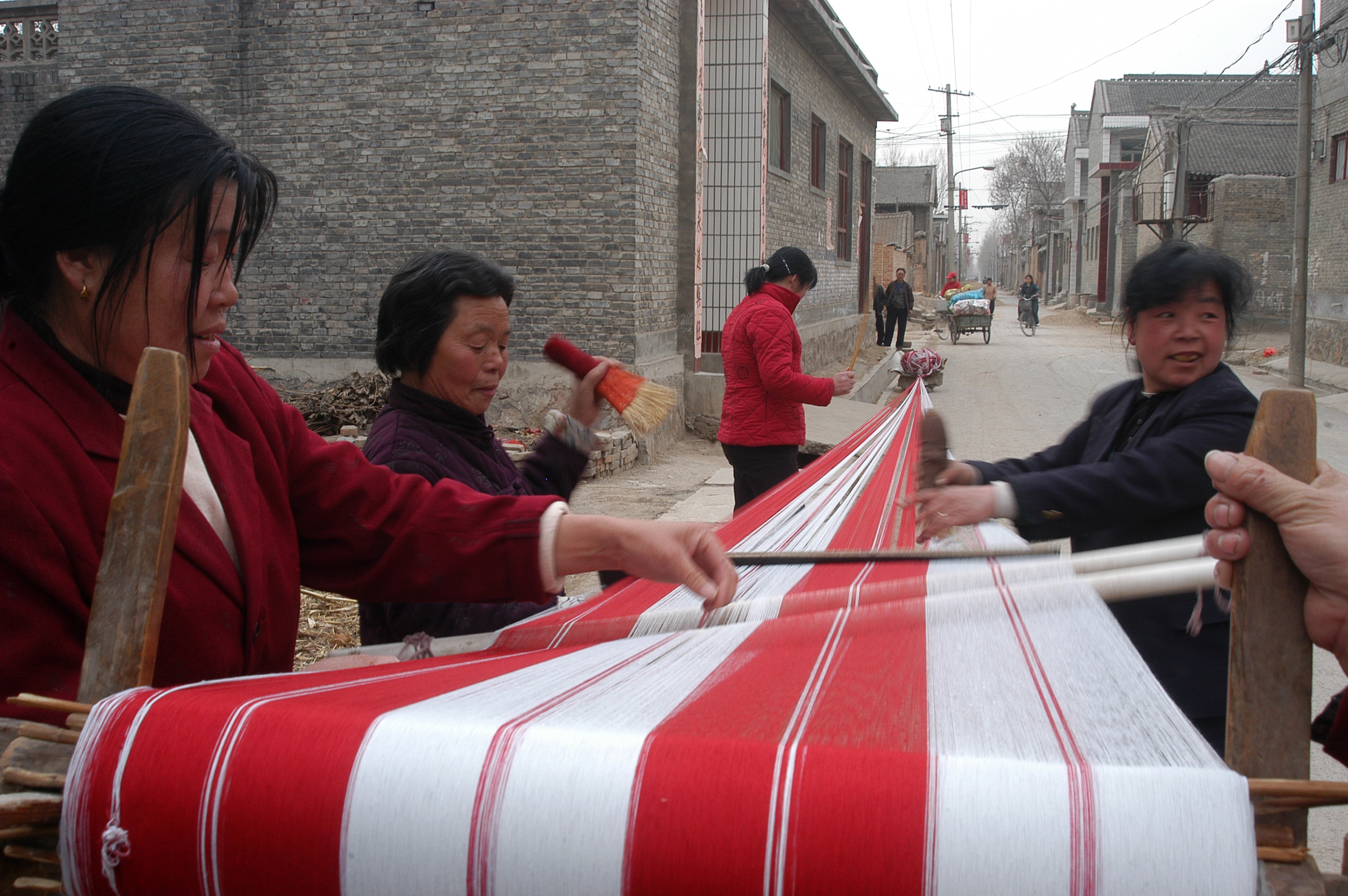 绛县手工织布历史久远,十分普及。昔时几乎家家户户都在织布。手织布的织造工艺极为复杂,从采棉纺线到上机织布经轧花、弹花、纺线、打线、浆染、沌线、落线、经线、刷线、作综、闯杼、掏综、吊机子、栓布、织布、了机等大小72道工序,全部采用纯手工工艺。它的图案可以从数种色线中变幻出诸多种绚丽多彩的图案,其图案意境,就是靠各种色线交织出各色几何图形来体现,通过抽象图案的重复、平行、连续、间隔、对比等变化,形成特有的节奏和韵律,富有艺术魅力。手工粗布纯棉含量100%,是一种纯天然绿色环保产品,产品舒适、对皮肤无任何刺激,抗静电、不起球、透气性强,还具有独特的自然按摩特点,能增加人体的微循环,调节神经、改善睡眠质量。在物质生活水平日渐提高的今天,粗棉布“崇尚绿色、回归自然”的特色赢得了广大消费者的宠爱。