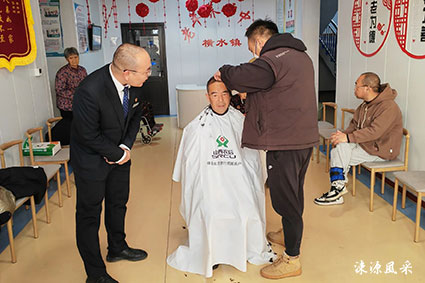 第三党支部的志愿者们来到横水镇新庄村老年养护中心,为老人们准备了生活慰问品,送上了农商行的祝福,受到了老人们的热烈欢迎,还专程邀请专业理发师前往养护中心为大家修剪头发,期间,该党支部的员工热情的与老人亲切的聊天,询问他们生活中遇到的金融问题和需求,并为老人们进行详细解答。剪的是“发”,暖的是“心”,理发师精湛的手艺和工作人员热情周到的服务受到老人们的一致称赞。