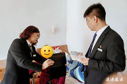 营业部 小王来到营业部大厅,向大堂经理寻求帮助。她的奶奶因腿脚不便,无法亲自前往营业厅办理密码重置,而她急需领取工资和生活补助。得知情况后,营业部两名工作人员带着金融背夹和相关资料,走进了老人家中。在温暖而细致的服务中,工作人员耐心地帮助老人完成密码重置手续。