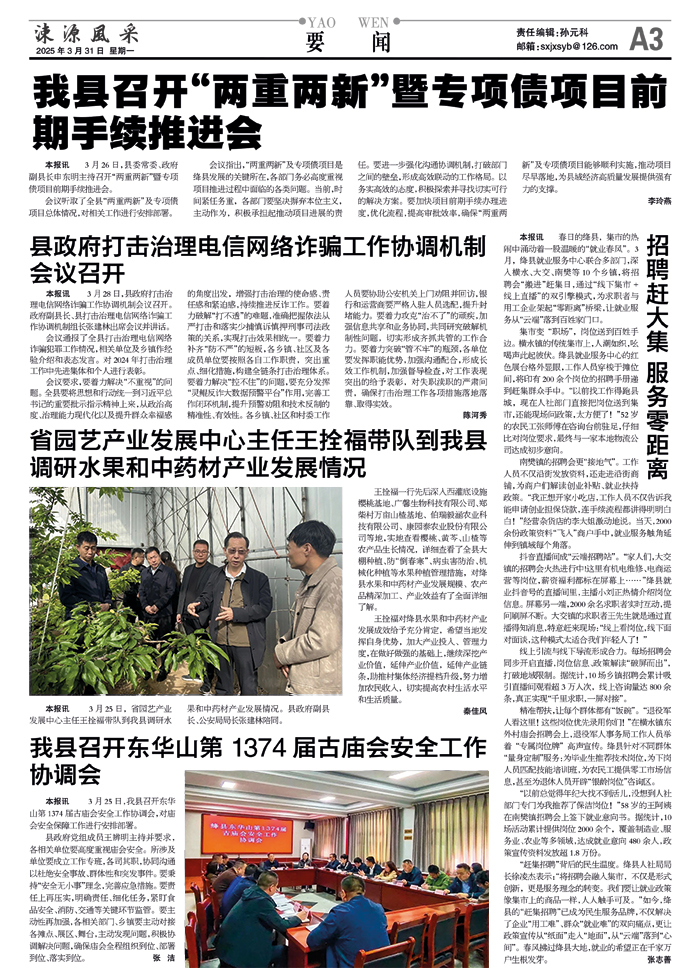 会议听取了全县“两重两新”及专项债项目总体情况,对相关工作进行安排部署。