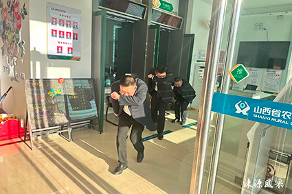 演练模拟营业厅内因电路短路引发火情,现场浓烟弥漫。柜员发现火情后,立即按照应急预案要求,迅速将现金及重要空白凭证锁入保险柜,切断营业区域电源,并拨打119火警电话。同时,监控中心通过实时画面接收到火情信号,第一时间启动应急联络机制。