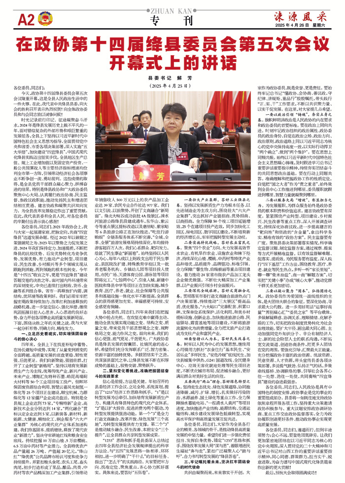 在政协第十四届绛县委员会第五次会议开幕式上的讲话