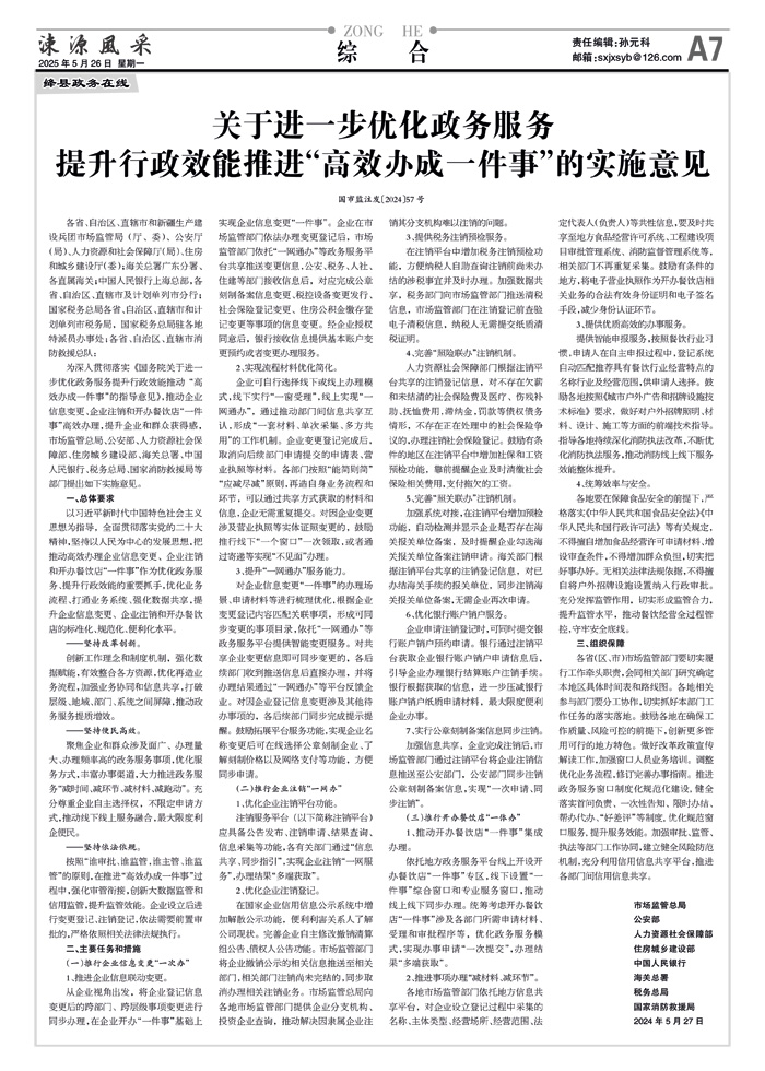 关于进一步优化政务服务提升行政效能推进“高效办成一件事”的实施意见