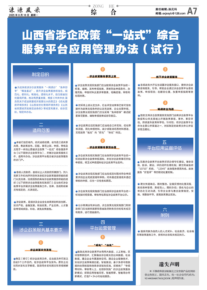山西省涉企政策“一站式”综合服务平台应用管理办法(试行)