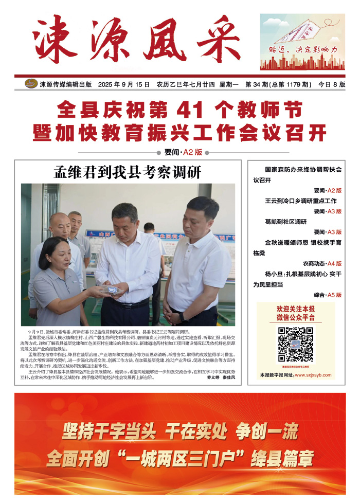 《涑源风采》贴近,决定影响力 涑源传媒编辑出版 微信:suyuanfengcai 邮箱:sxjxsyb@126.com 电话:6523423