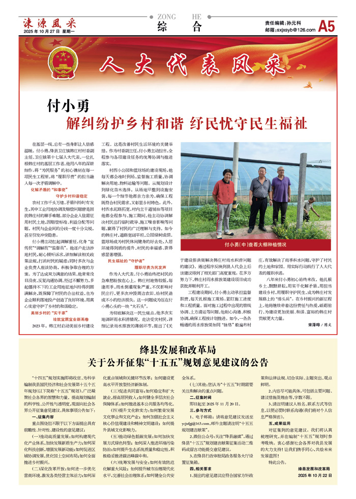 工程建设期间,付小勇主动承担监督职责,每天扎根施工现场,紧盯施工进度和工程质量。面对施工过程中出现的管线协调、土方清运等问题,他耐心沟通、积极协调,确保工程按计划推进。如今,一条条畅通的雨水排放渠如同 “脉络” 般遍布村庄,有效解决了雨季积水问题,守护了村民的土地和家园,用实际行动践行了人大代表的履职承诺。