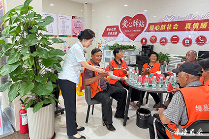寒潮来袭时,驿站提前调试空调、备好热水,工作人员主动走出网点,邀请户外劳动者进站歇脚取暖;炎炎夏日里,驿站备好清凉饮品和避暑药品,为劳动者驱散酷暑;遇到恶劣天气,驿站的便民雨伞、应急雨衣为劳动者遮风挡雨。桥东分理处的驿站更是将这份守护融入四季流转与传统节气中,成为户外劳动者四季无忧的“刚需补给站”。炎炎夏日,酷暑难耐,驿站开启“清凉守护”模式,站内全天候供应冰镇绿豆汤、酸梅汤,墙角的医药箱里备齐了藿香正气水、清凉油、创可贴等防暑药品和应急物资,还专门开辟“午休专区”,让户外劳动者能在高温时段歇一歇、缓一缓,整个夏季累计送出清凉物资500余份,服务户外劳动者超200人次。寒冬腊月,驿站变身“温暖小屋”,空调持续制热,热水壶始终烧着滚烫的开水,微波炉随时为需要的劳动者加热饭菜,还贴心准备了驱寒姜茶、保暖坐垫、热水袋,冬季累计服务户外劳动者超600人次。