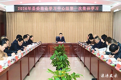 本报讯 1月26日,县委书记王云主持召开2026年县委理论学习中心组第一次集体学习会议,传达学习习近平总书记在《求是》杂志上发表的重要文章《学习好贯彻好党的二十届四中全会精神》和习近平总书记在二十届中央政治局第二十一次集体学习时、在中央政治局民主生活会上的重要讲话精神等内容。市委宣传部副部长、一级调研员梁武军一行到会指导并作点评。