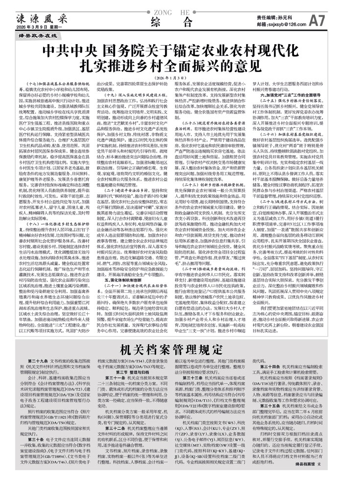 中共中央 国务院关于锚定农业农村现代化扎实推进乡村全面振兴的意见