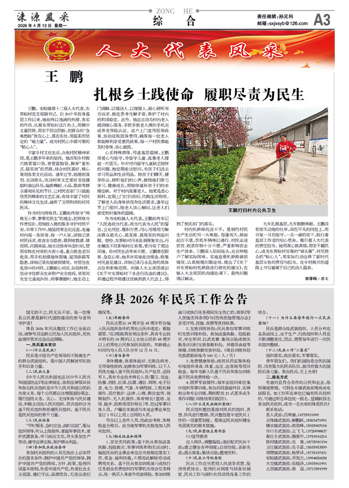 绛县2026年民兵整组工作已全面启动,诚挚号召适龄公民加入民兵组织,用热血情怀筑牢应急应战屏障。